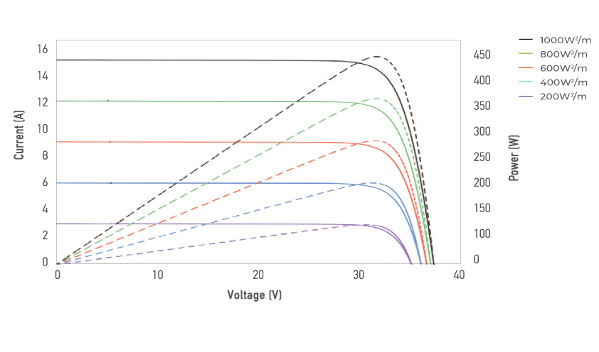 | Maximum Power | Pmax[Wp] | 440327 | 445360 | 450364 | 455368 | 460372 |